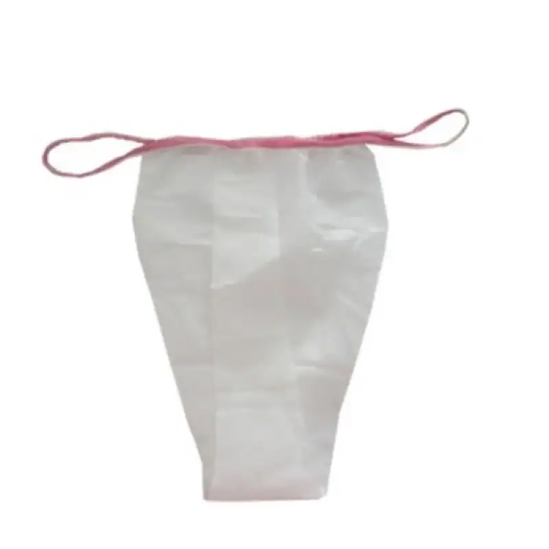 Γυναικείο εσώρουχο μίας χρήσης τύπου tanga, λευκό, από υλικό non woven, ιδανικό για αισθητικές και ιατρικές εφαρμογές. Το γυναικείο εσώρουχο μίας χρήσης τύπου tanga είναι κατασκευασμένο από υλικό non woven και προσφέρει άνεση, υγιεινή και διακριτικότητα κατά τη διάρκεια θεραπειών σώματος.