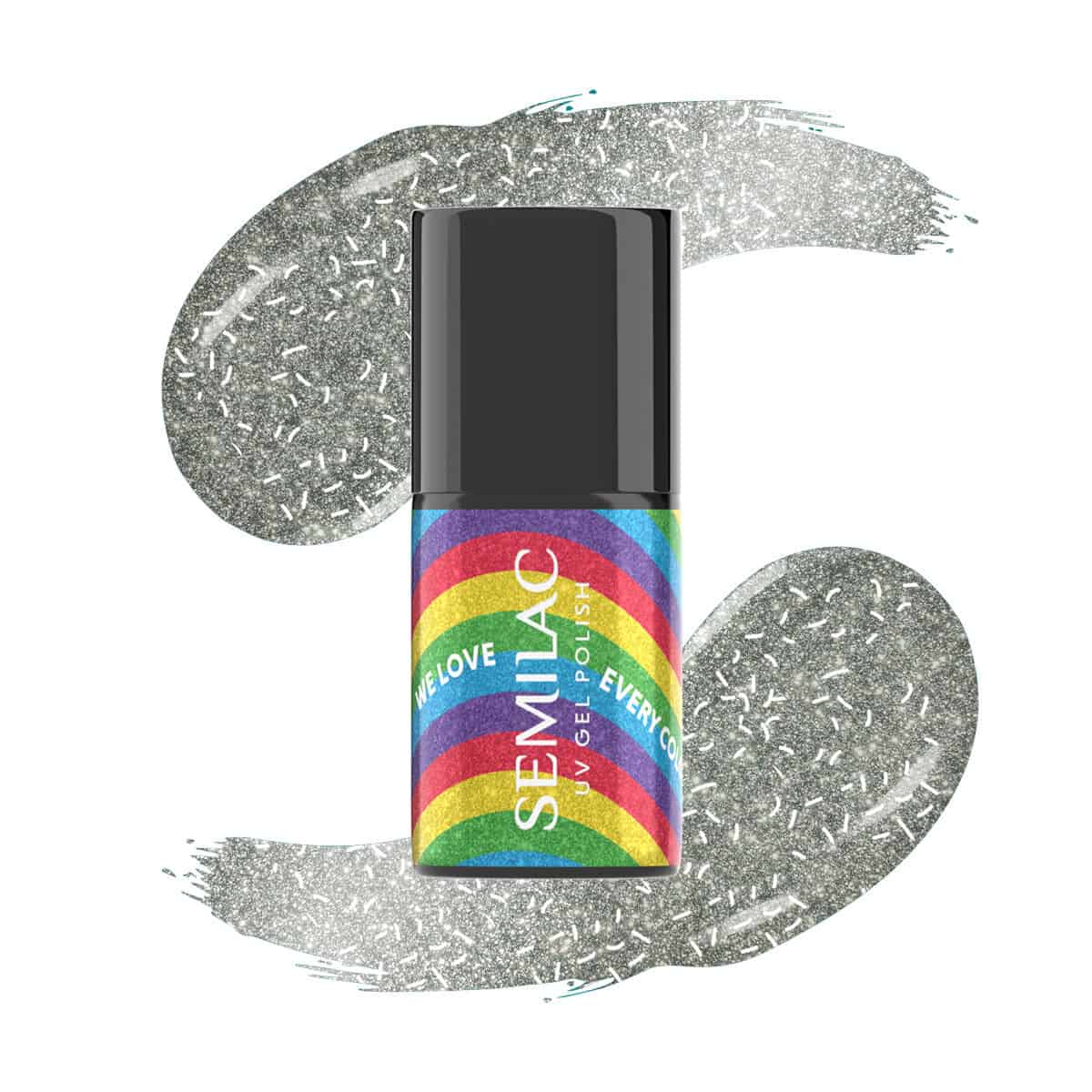 Ασημί, γκλίτερ, ουράνιο τόξο, κομφετί, εφέ FLASH είναι οι αναμφισβήτητες λέξεις-κλειδιά για αυτό το μοναδικό χρωματιστό ημιμόνιμο βερνίκι από την Semilac!