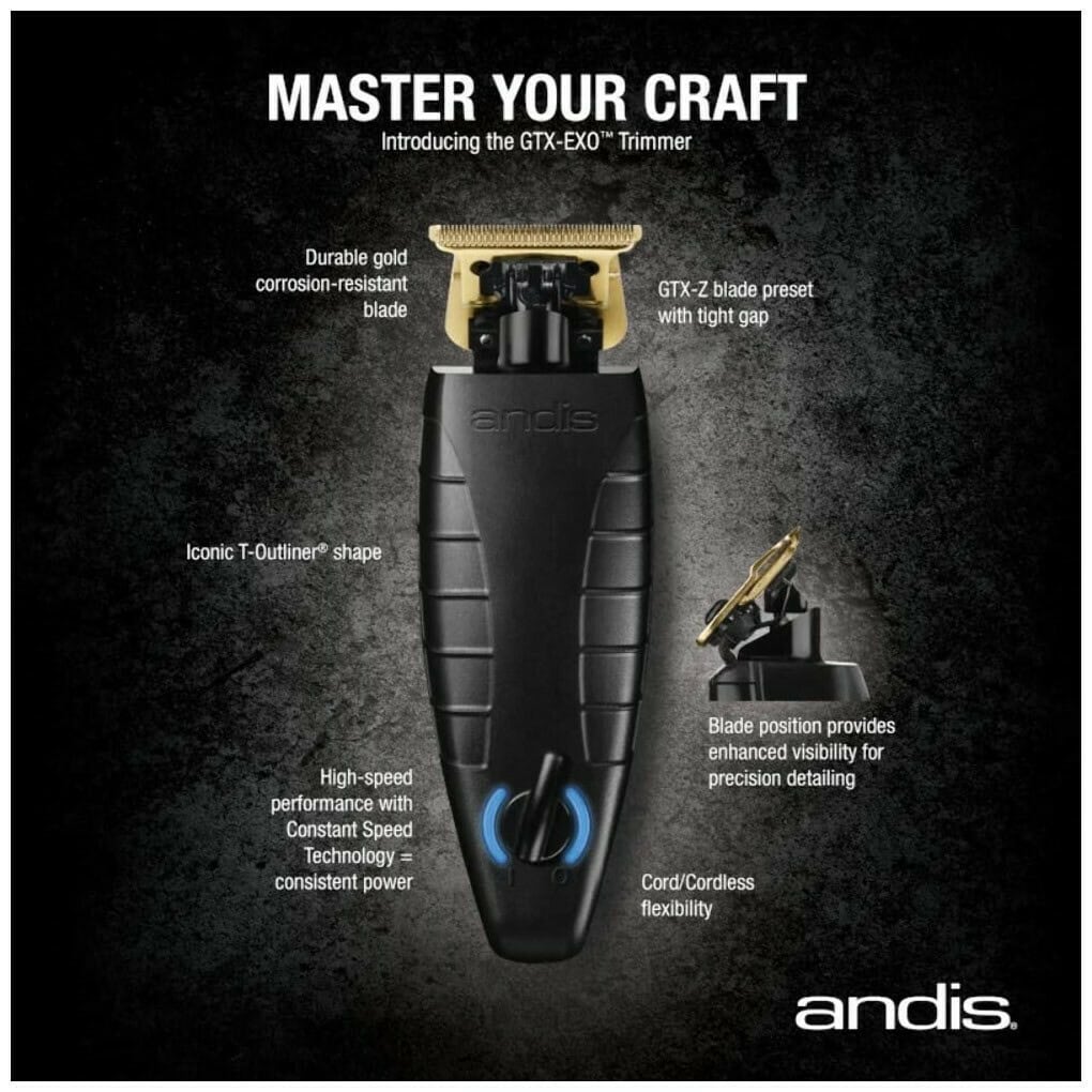 Το trimmer GTX-EXO αποτελεί το πιο ισχυρό & καινοτόμο trimmer της Andis. Με μοναδικό – εργονομικό σχεδιασμό & ελαφριά κατασκευή, για μέγιστη ευελιξία κατά τη διάρκεια της εργασίας. Διαθέτει εκτεθειμένη κεφαλή κοπής, για αυξημένη ακρίβεια και ακόμη πιο κοντά κοψίματα σε σχέση με προηγούμενα μοντέλα, ενώ μπορεί να μηδενιστεί (zero gap).