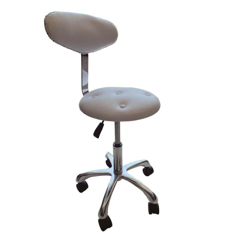 Σκαμπό εργασίας VM-689, σε λευκό χρώμα – Με ρυθμιζόμενο ύψος, ειδικά σχεδιασμένο για επαγγελματίες ομορφιάς όπως κομμωτές, κομμώτριες & αισθητικούς.