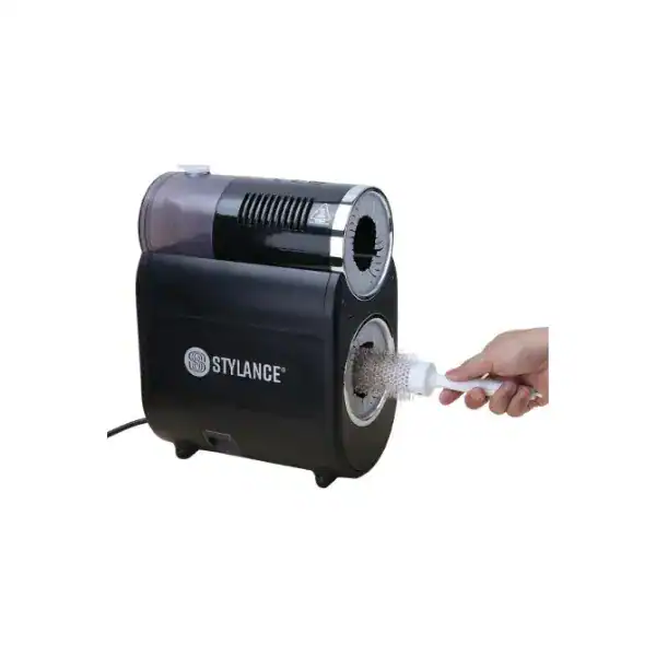 Διαθέτει σύστημα καθαρισμού 2 σε 1 με δύο λειτουργίες: η κάτω υποδοχή αφαιρεί τις τρίχες από τις βούρτσες μέσω περιστρεφόμενου κυλίνδρου, ενώ η επάνω υποδοχή απολυμαίνει με καυτό ατμό. Σε μόλις 1–3 λεπτά, οι βούρτσες είναι καθαρές και έτοιμες για τον επόμενο πελάτη.