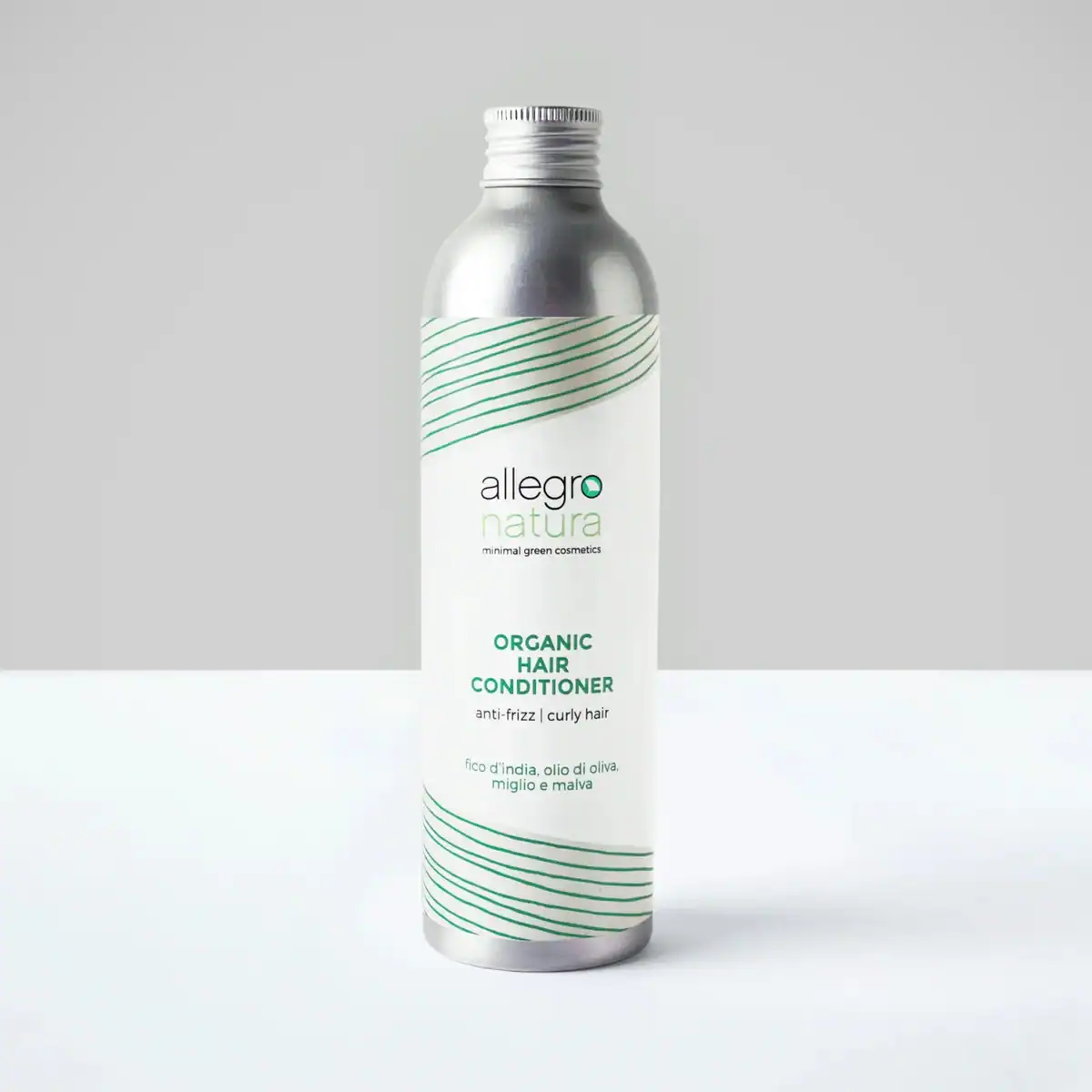 Το Allegro Natura Organic Conditioner κατά του Φριζαρίσματος για Σγουρά Μαλλιά είναι ειδικά σχεδιασμένο για ξηρά, ατίθασα και σγουρά μαλλιά που χρειάζονται θρέψη και καλύτερο έλεγχο του φριζαρίσματος. Το conditioner περιέχει φυτοσύμπλεγμα Φραγκόσυκου, που βοηθά στη θρέψη των μαλλιών από τη ρίζα έως τις άκρες, χαρίζοντας ζωντάνια και λάμψη. Η βιολογική Aloe συμβάλλει στην προστασία και την ενυδάτωση των μαλλιών και του τριχωτού, ενώ το βιολογικό Ελαιόλαδο ενισχύει τη λάμψη και βοηθά στην περιποίηση της τρίχας. Το εκχύλισμα Κεχριού, πλούσιο σε μέταλλα, συμβάλλει στη διατήρηση της υγιούς όψης των μαλλιών. Η σύνθεση ολοκληρώνεται με ανθόνερο Μολόχας από το Πιεμόντε, πλούσιο σε βιταμίνες A, B και C, καθώς και σε μέταλλα όπως ασβέστιο και κάλιο, προσφέροντας φροντίδα για πιο απαλά, λαμπερά και ευκολοχτένιστα μαλλιά.
