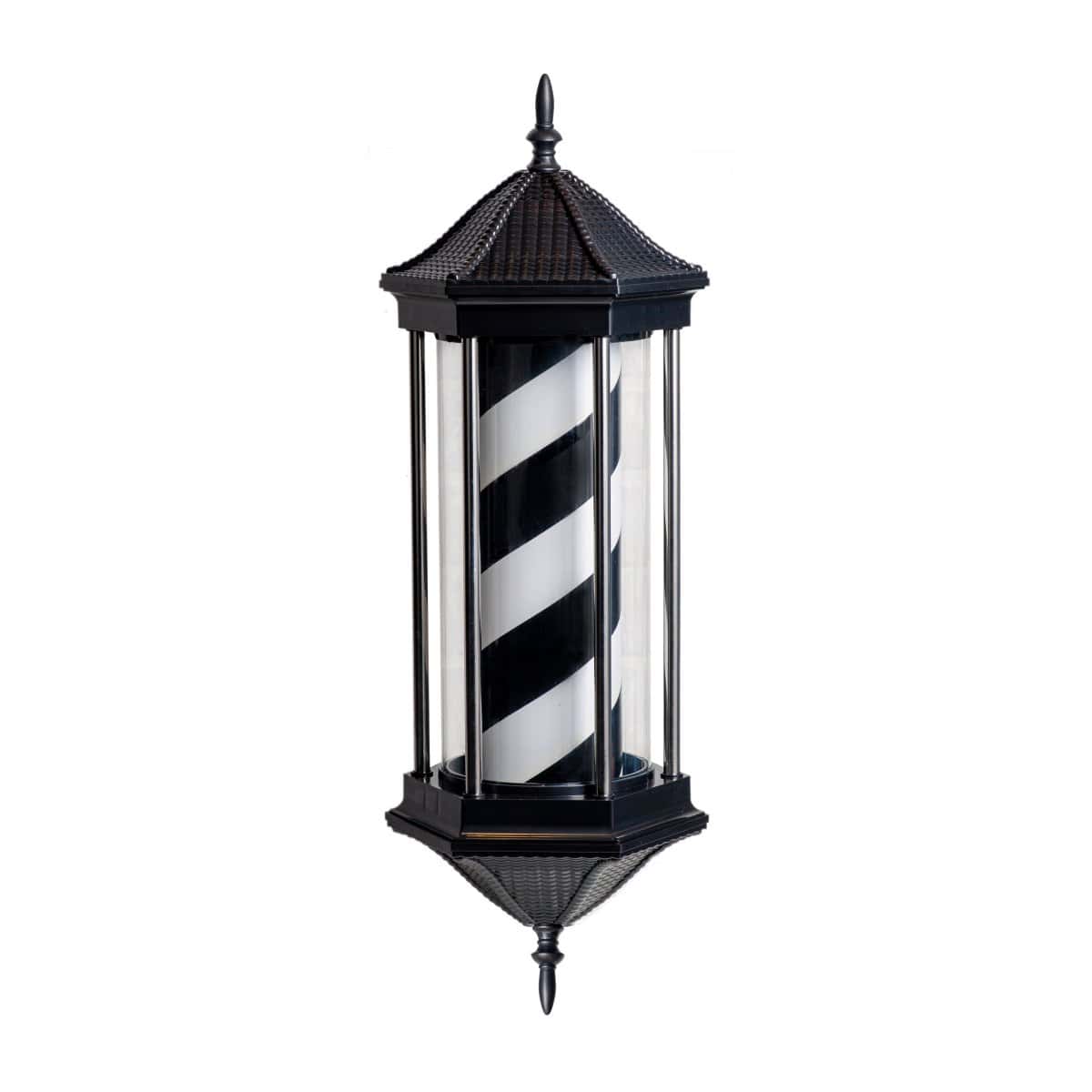 Φάρος κουρείου φωτιζόμενος, περιστρεφόμενος και αδιάβροχος, σε εξάγωνο vintage σχεδιασμό.