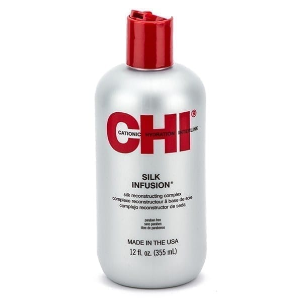 - Απλώστε μικρή ποσότητα CHI Silk Infusion στις παλάμες και εφαρμόστε ομοιόμορφα στα μήκη και τις άκρες.
