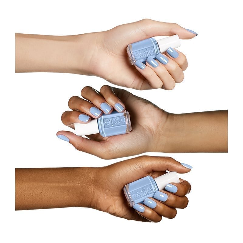Aπαλό και προκλητικό, τίποτα δεν είναι πιο καλοκαιρινό από το γλυκό μπλε βερνίκι essie Color 374 Salt Water Happy που ζεσταίνει το βλέμμα.