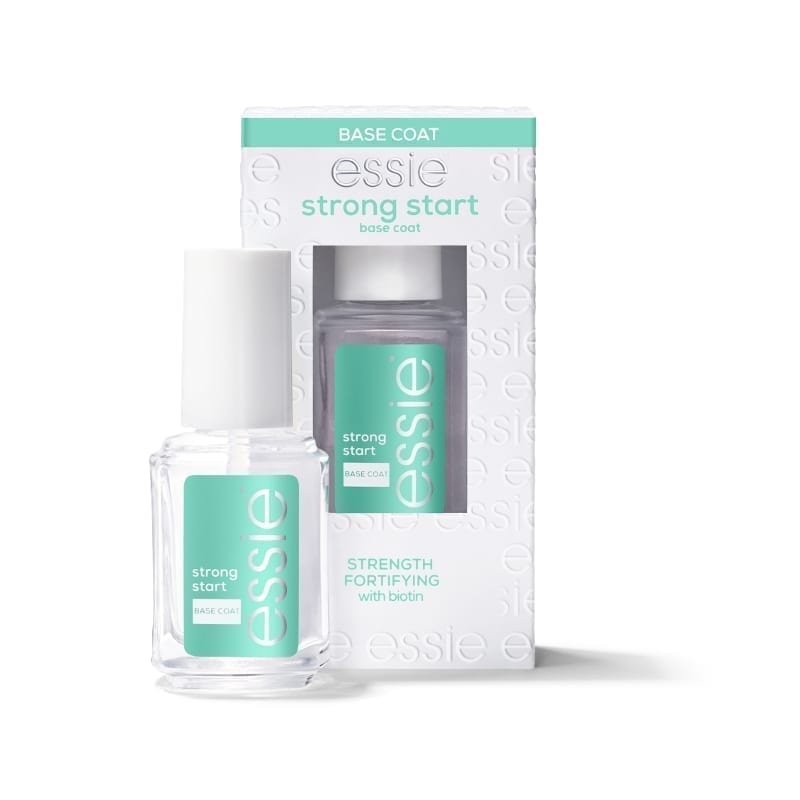 Η νέα φόρμουλα ενδυνάμωσης του Εssie Nail Care Strong Start Base Coat 13,5ml, εμπλουτισμένη με βιοτίνη, βοηθάει στην ενίσχυση ενάντια των αδύναμων και εύθραυστων νυχιών.