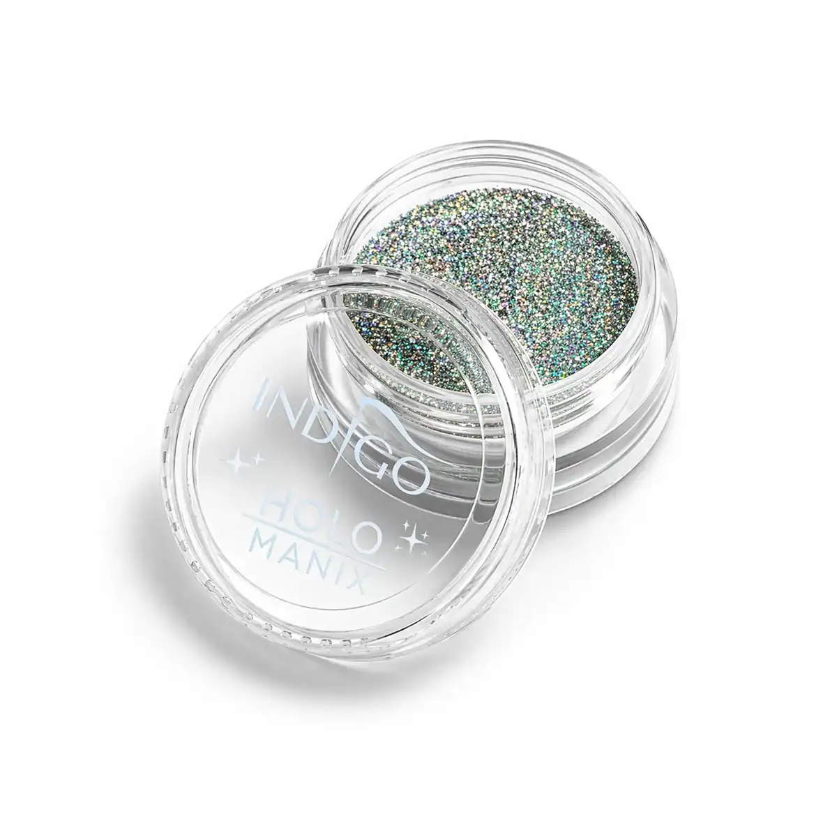 Η Indigo Effect Holo Manix είναι σκόνη εφέ νυχιών που δημιουργεί λεία, ολογραφική επιφάνεια καθρέφτη με εντυπωσιακές ιριδίζουσες αντανακλάσεις.
