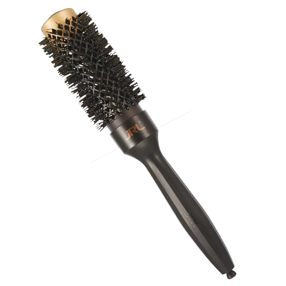 Η βούρτσα JRL Ceramic Ionic διαθέτει καινοτόμες ιονικές τρίχες με στρογγυλεμένες άκρες, προσφέροντας έναν άνετο και ανώδυνο βούρτσισμα. Οι κυματιστές τρίχες διατηρούν τη σταθερότητα και ενισχύουν την ανύψωση και το σχήμα των μαλλιών, χωρίς κόπο. Η κεραμική επικάλυψη με γραφένιο (IGC) εξασφαλίζει ομοιόμορφη κατανομή θερμότητας σε όλη την επιφάνεια της βούρτσας. Οι αεραγωγοί επιταχύνουν τη διαδικασία, ελαχιστοποιώντας τις βλαβερές επιδράσεις από τη θερμότητα. Η επαναστατική τεχνολογία της επιφάνειας εργασίας (barel) αλλάζει χρώμα από μαύρο σε χρυσό με τη θερμότητα, προσφέροντας έναν εντυπωσιακό οπτικό αποτέλεσμα. Ο εργονομικός, αντιολισθητικός σχεδιασμός της λαστιχένιας χειρολαβής εξασφαλίζει μέγιστη άνεση κατά τη χρήση, ενώ η αποσπώμενη ουρά βοηθάει στη δημιουργία χωρισμάτων. Ιδανική για θερμικό styling, η βούρτσα διατίθεται σε διαμέτρους 25mm, 32mm, 43mm και 53mm