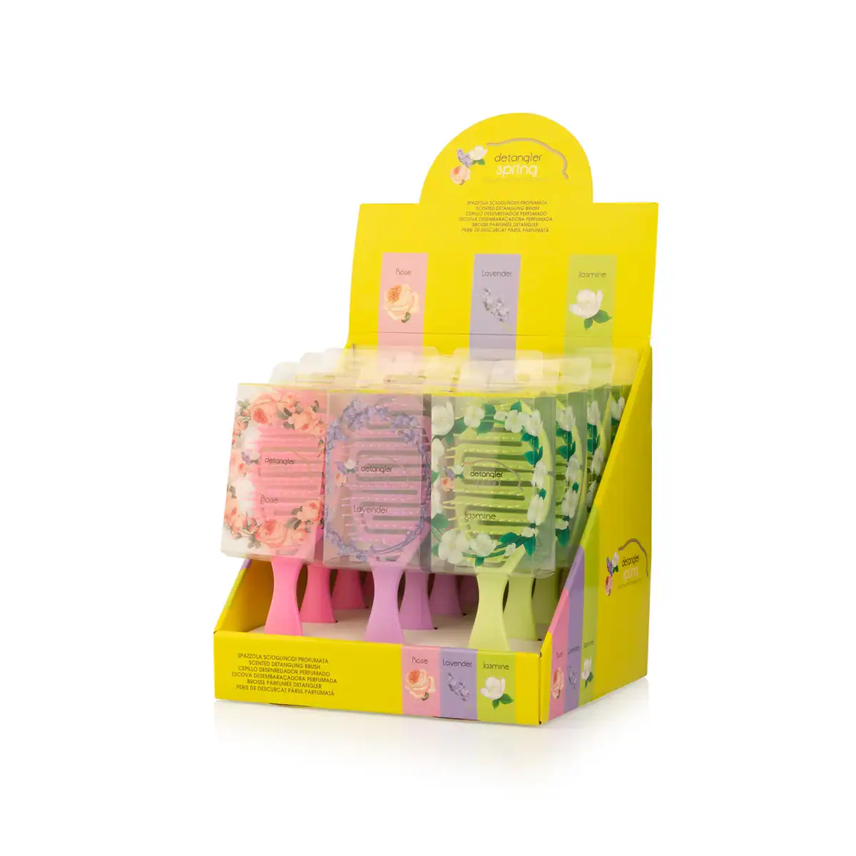 Εύκαμπτη βούρτσα ξεμπερδέματος για εύκολο χτένισμα σε βρεγμένα ή στεγνά μαλλιά, με διακριτικό λουλουδάτο άρωμα.