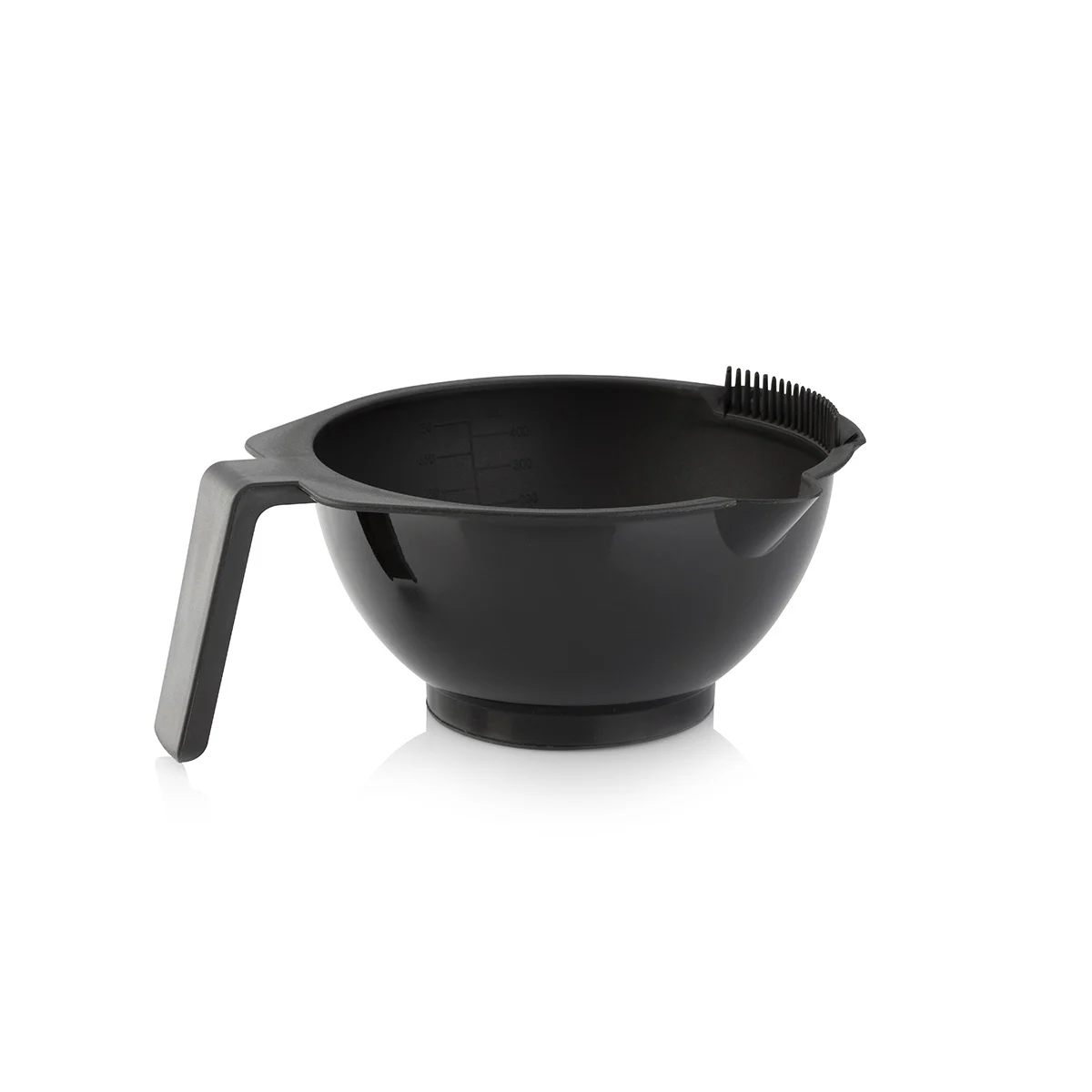 Το μαύρο χρώμα του μπολ προσδίδει κομψότητα και επαγγελματική αισθητική, ενώ το εργονομικό του σχήμα προσφέρει σταθερό κράτημα και άνεση κατά τη χρήση. Κατάλληλο για κάθε είδος βαφής μαλλιών, είτε πρόκειται για βαφή, ντεκαπάζ, μάσκες ή θεραπείες.