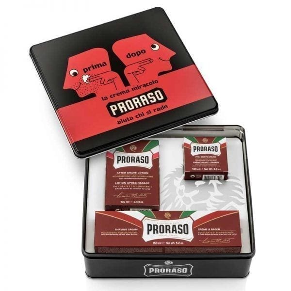 Τα παραπάνω προϊόντα θα τα βρούμε σε μια ρετρό μεταλλική συσκευασία και το καπάκι της διακοσμεί μια παλαιότερη διαφήμιση της Proraso που έχει σαν σκοπό να προωθήσει την χρήση της κρέμας για το καθημερινό ξύρισμα. Η συσκευασία είναι συλλεκτική με ένα νοσταλγικό χαρακτήρα από το παρελθόν και σίγουρα θα είναι ένα ξεχωριστό δώρο προς τα αγαπημένα σας πρόσωπα.