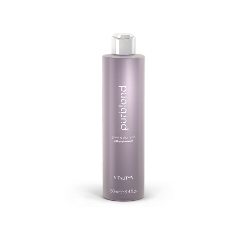 - Glowing Shampoo 250 ml: Τα βιολετί χρωστικά (violet pigments) είναι εξειδικευμένα για χρήση στο σπίτι, ενώ η φυτοκερατίνη επιτρέπει τα οφέλη της υπηρεσίας του κομμωτηρίου να συνεχίσουν τη δράση τους στο σπίτι.