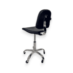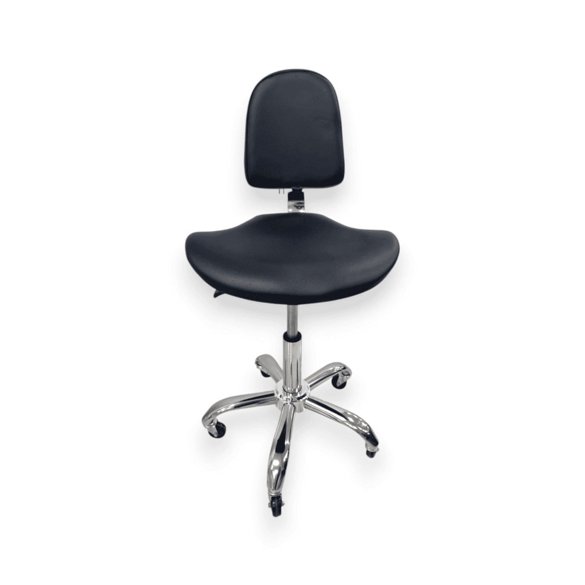 Άνετο σκαμπό εργασίας με πλάτη, ρυθμιζόμενο ύψος και τροχούς για εύκολη μετακίνηση, ιδανικό για επαγγελματική χρήση σε κομμωτήρια και χώρους αισθητικής