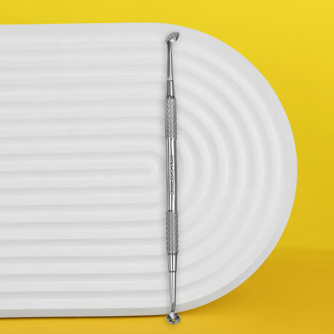 Το τρικομεντόν Double-Ended Spoon Expert 20 | 1 της Staleks Pro είναι ένα επαγγελματικό εργαλείο καθαρισμού δέρματος διπλής όψης, σχεδιασμένο για ακριβή και ασφαλή απομάκρυνση των ρύπων, των μαύρων στιγμάτων και της λιπαρότητας.