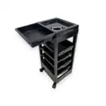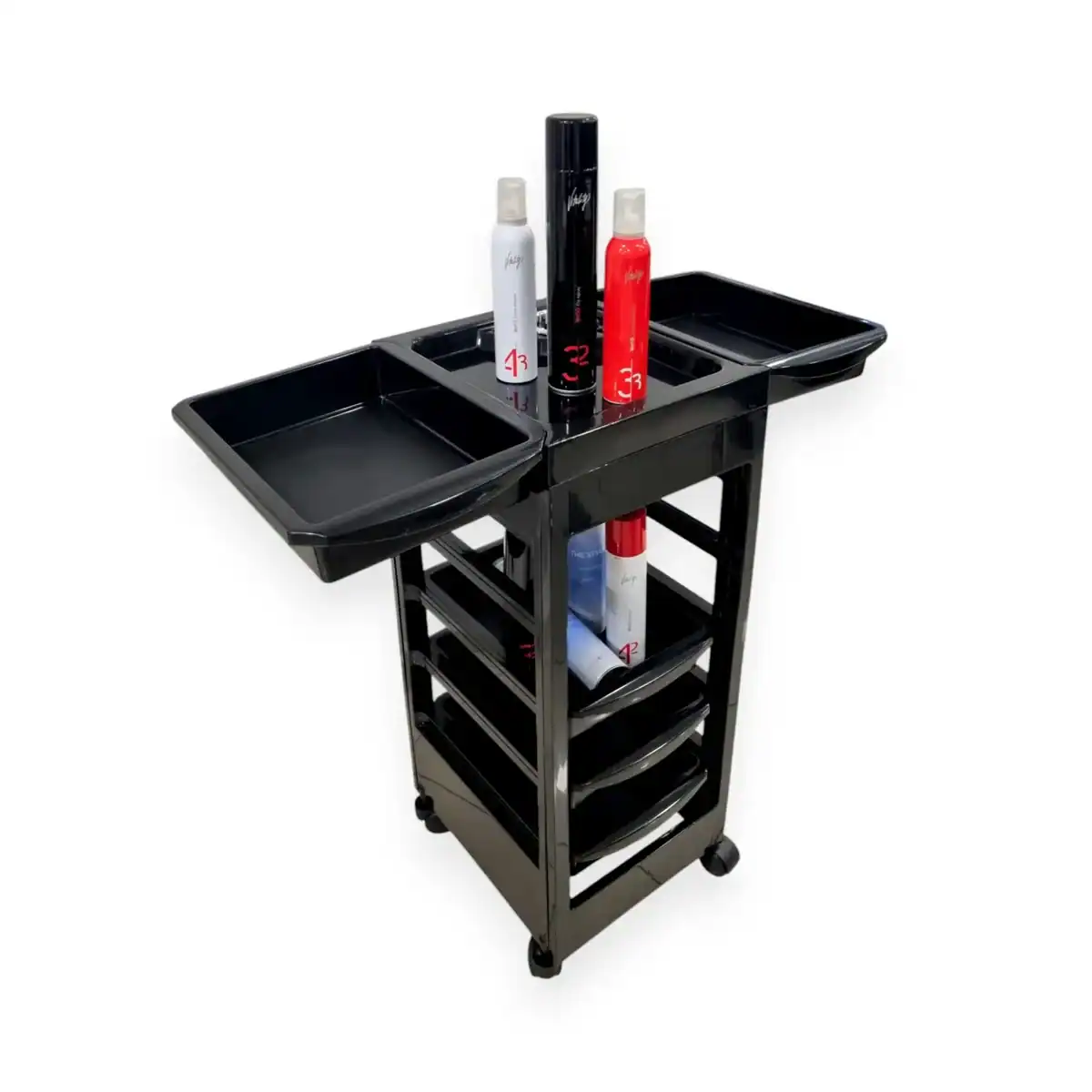 Τροχήλατος βοηθός κομμωτηρίου με πέντε συρτάρια και επιφάνειες εργασίας, ιδανικός για την αποθήκευση και τακτοποίηση εργαλείων και προϊόντων